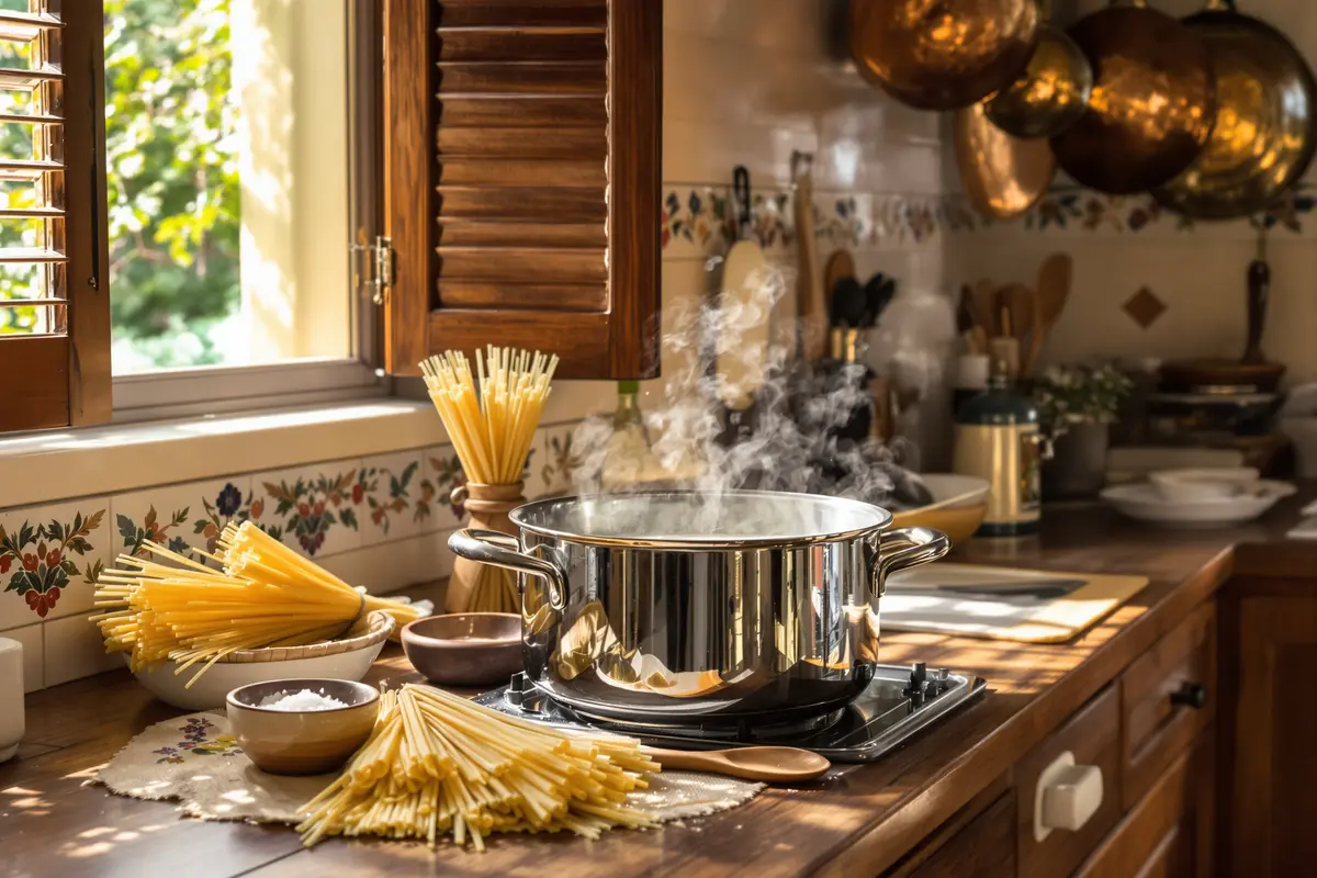 Pour les Italiens, l’eau de cuisson doit rester simple : de l’eau bouillante, du sel, rien de plus. Pas de beurre, pas d’huile, pas d’herbes. Cette simplicité fait partie de l’ADN culinaire du pays.